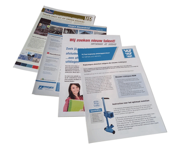 Hieronder een RAI beurskrantje, een papieren PROjEX nieuwsbrief, een wervende studentenleaflet voor HBSoftware en een Koplampen afstelapparatuur leaflet voor VLT.